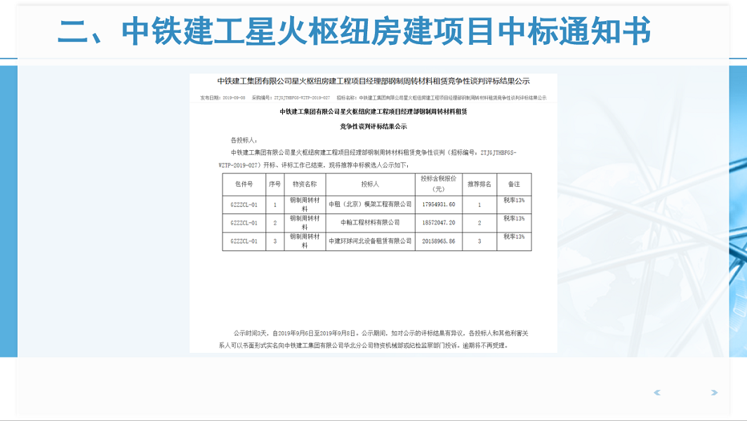 中铁建工星火枢纽房建项目盘扣式脚手架、镀锌钢管、镀锌扣件租赁项目